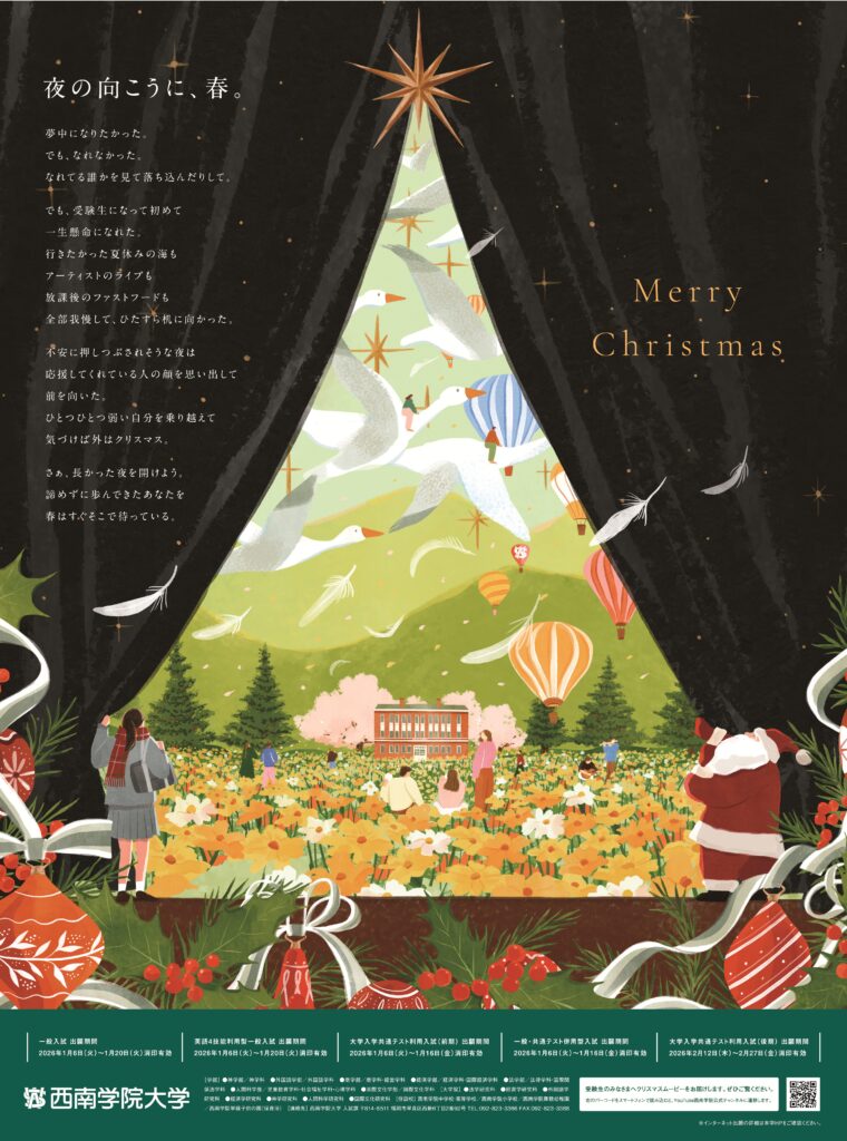 受験生に向けた応援広告をイラストレーターのタカヤユリエさんを起用し、制作致しました。