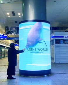 まるでマリンワールド内に実際にあるアザラシの水槽が駅構内に